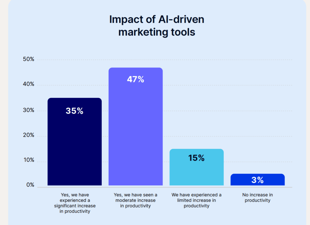 Eight out of 10 marketers say AI has improved their productivity, but only about a third say the impact is significant. Almost half said it was moderate. The findings show how automation is becoming the norm without redefining creative work. Emplifi said AI is “proving its value where marketers need it most: time.”